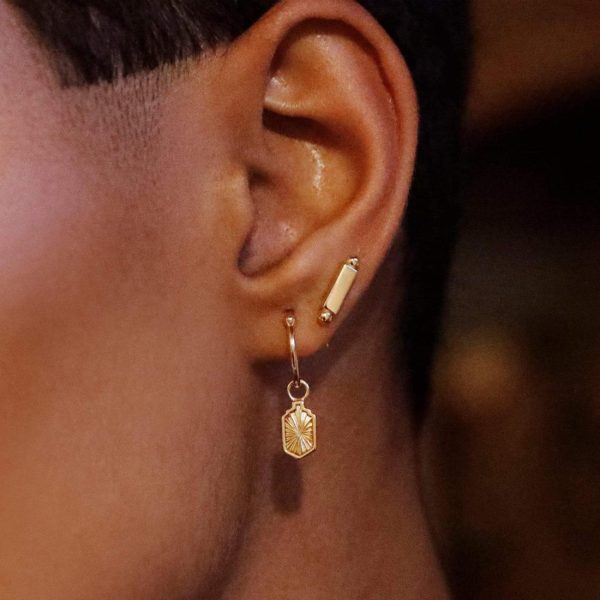 Up your ear game and ward off those negative vibes with our Estée Lalonde Sunburst Shield Mini Charm Earrings. Handcrafted in 18ct gold plated silver, these cute charm earrings are perfect addition to your earring collection.