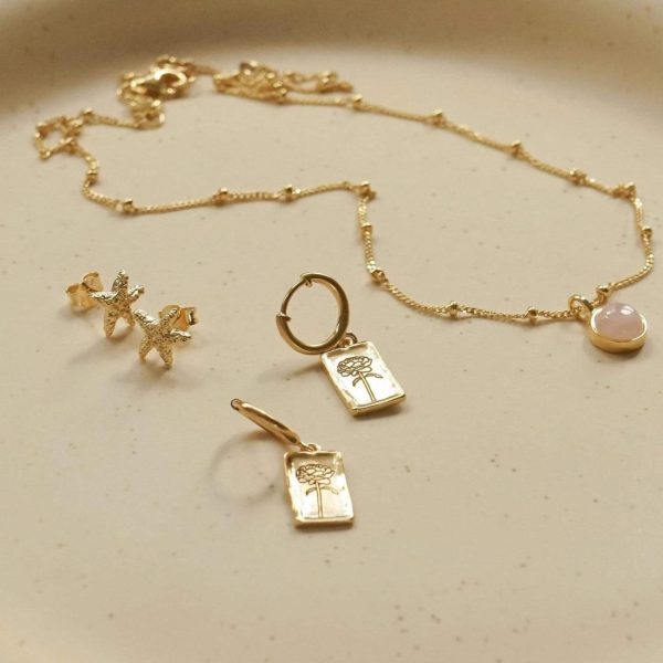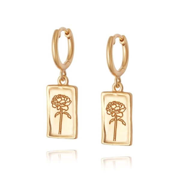 Long a symbol of devotion and passion, the rose is often used to communicate the emotion of love, picking up where words fail. Featuring a rectangular pendant with a delicate stamped rose illustration, this handcrafted 18ct gold plated silver pendant has a subtle matte finish and is hung from a small, elegant hoop.