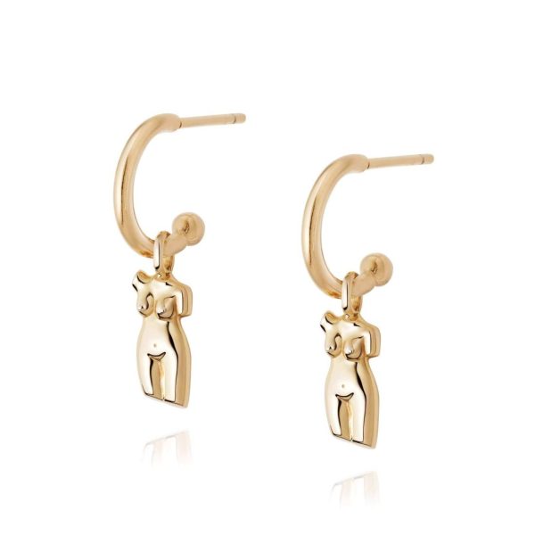 Inspired by the beauty and strength of the female form, these standout drop earrings are an extension of our best-selling Vita Necklace. Hand-crafted in an 18ct gold plate featuring a sculpted bust charm on a fine hoop, this is a power statement piece that is guaranteed to turn heads. Style with a second drop style or a classic huggie for a bold look.
